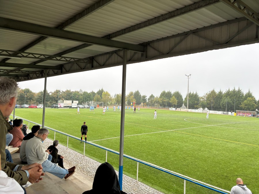 Irgendwie mag ich die Regenstimmung beim Fußballgucken in Portugal. In der Regel rückt man dadurch noch ein bisschen näher zusammen und das Gemeinschaftserlebnis Fußball ist noch einmal ein wenig spürbarer. Der reichere Vorort führte auf jeden Fall nicht zu einem vornehmeren Mundwerk, denn auch hier wurde geflucht, was das Zeug hielt.
