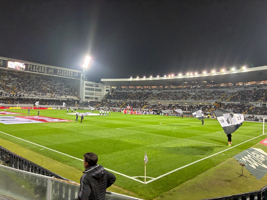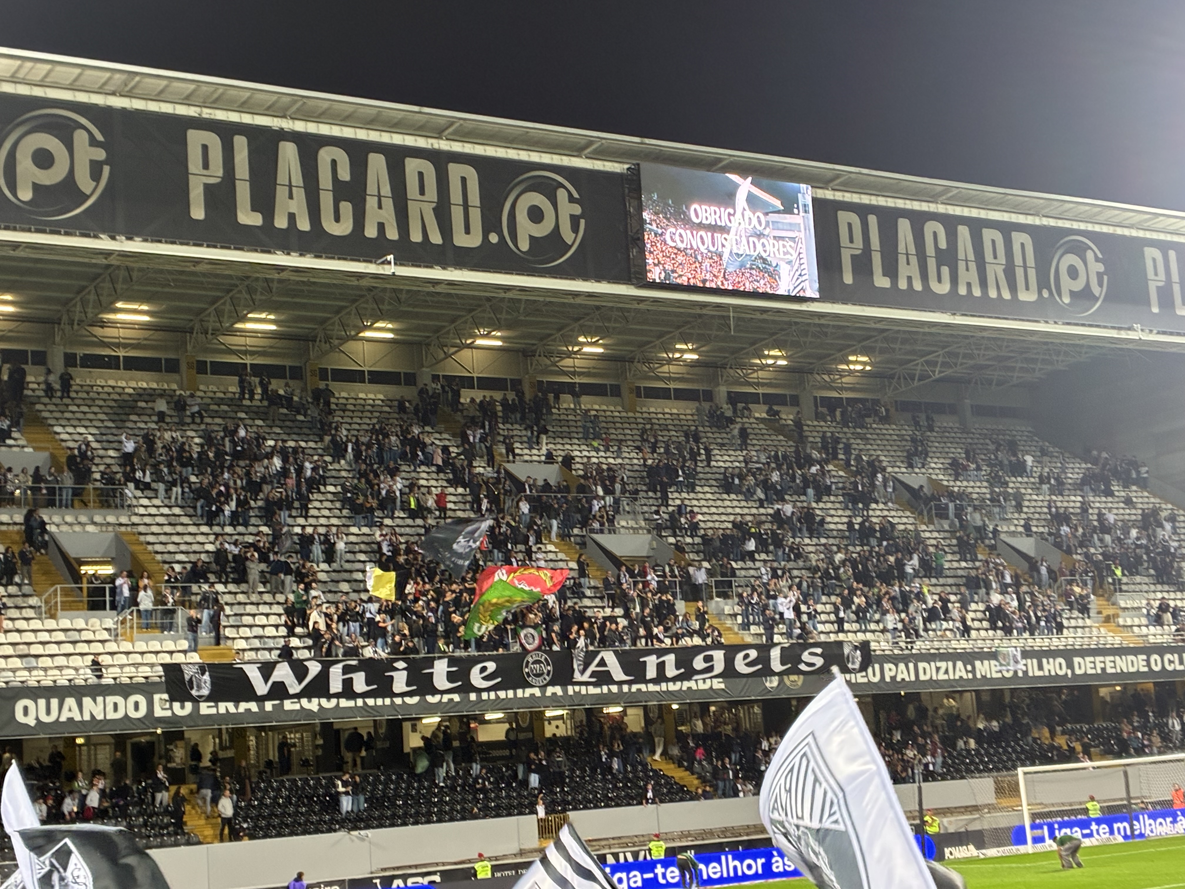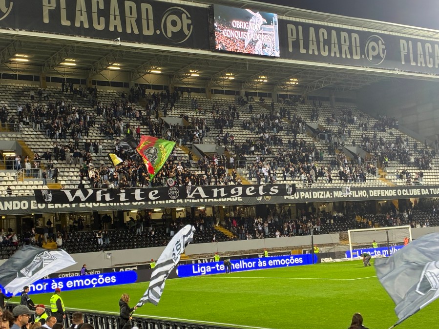 Einige Personen hatten sich im Gästeblock eingefunden- traten aber nicht weiter in Erscheinung. Santa Clara konnte früh in Führung gehen. Vitória kämpfte sich mit fortlaufender Spieldauer immer besser in die Partie und konnte das Spiel in der zweiten Halbzeit innerhalb weniger Minuten drehen. Die Mannschaft wurde angetrieben vom leidenschaftlichen Samu, der dann auch das Siegtor erzielte. Eine kleine Rache, da Santa Clara im letzten Jahr den Conference-Leauge-Quali-Platz geklaut hat. In der Folge ging dann auch das normale Publikum mit und es wurde noch ein ganz schönes Stadionerlebnis.