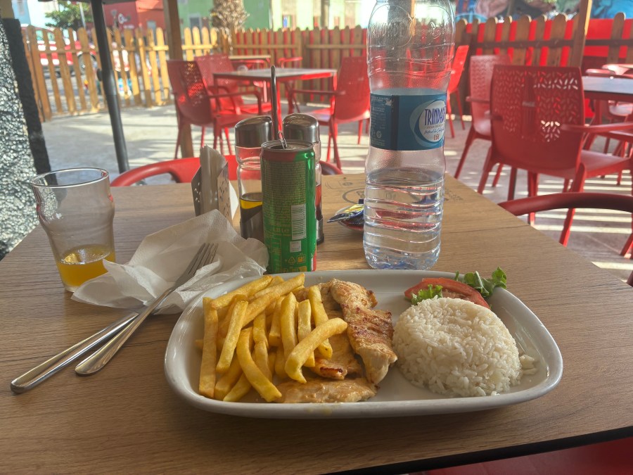 Ich verzichtete im Anschluss auf das zweite Spiel, da ich langsam auch Vorkehrungen für mein 1.000 Spiel treffen wollte und mir das Herthaspiel gegen Dynamo ausgeguckt hatte. Ich wollte mir dann zumindest noch kurz Espargos angucken, um nicht nur das touristische Santa Maria gesehen zu haben. Die Stadt gefiel mir erstaunlich gut und es machte Spaß durch die Gassen zu laufen. Am Markt fand ich dann noch ein kleines Restaurant und konnte mit gutem Blick auf der Terrasse mein Essen einnehmen. Dann lief ich zur Busstation und bekam den letzten Platz in einem Chapa nach Santa Maria. Ich sagte dem Fahrer beim Einsteigen bereits, wo ich aussteigen möchte. Trotz zwischenzeitlicher Kommunikation klappte der Halt dann aber nicht auf Anhieb, sodass ich aus der letzten Reihe nach vorne schreien musste. Aber auch das klappte schlussendlich und so endete ein richtig schöner Nachmittag in Espargos.