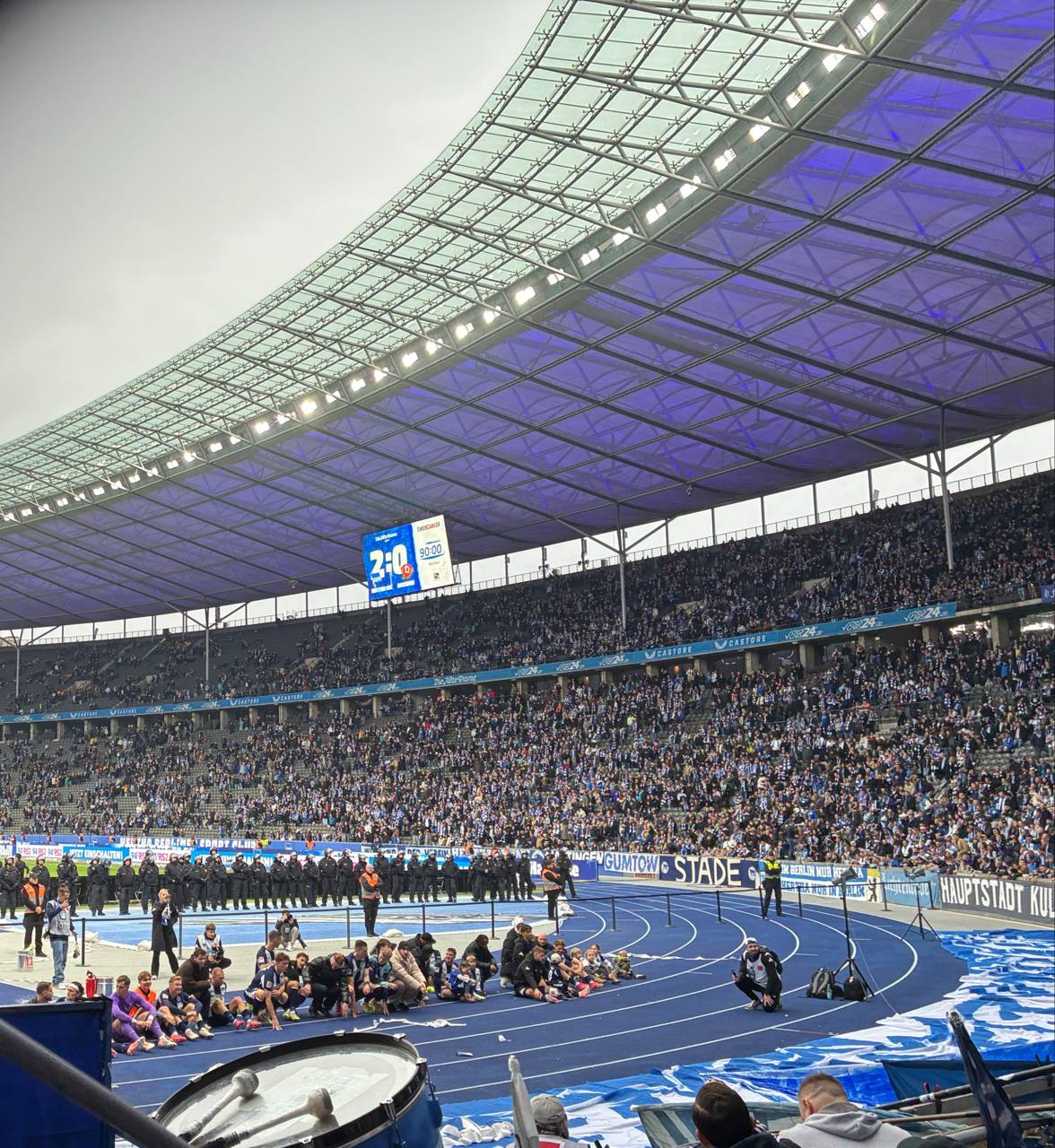 Bei mir war dann der Stecker gezogen und ich musste mir eine Cola im Stadionrestaurant holen. Im Nachgang ging es dann geschlossen auf den Parkplatz, wo ich weiter an meiner Hydration arbeitete. Mit dem einsetzenden Regen gestattete ich mir dann meinen Herthatag zu beenden und fuhr mit dem Fahrrad nach Grunewald. Dort stieg ich dann in die S-Bahn und fuhr in die wunderschöne brandenburgische Landeshauptstadt. Die nächsten Tage taten meine Stimmbänder und mein Brustkorb so weh, dass ich dauerhaft Lutschtabletten zu mir nahm. Aber das war es definitiv wert! 1.000 Meilenstein eingetütet! Danke Hertha für diesen schönen Tag. Auf zur 2.000!