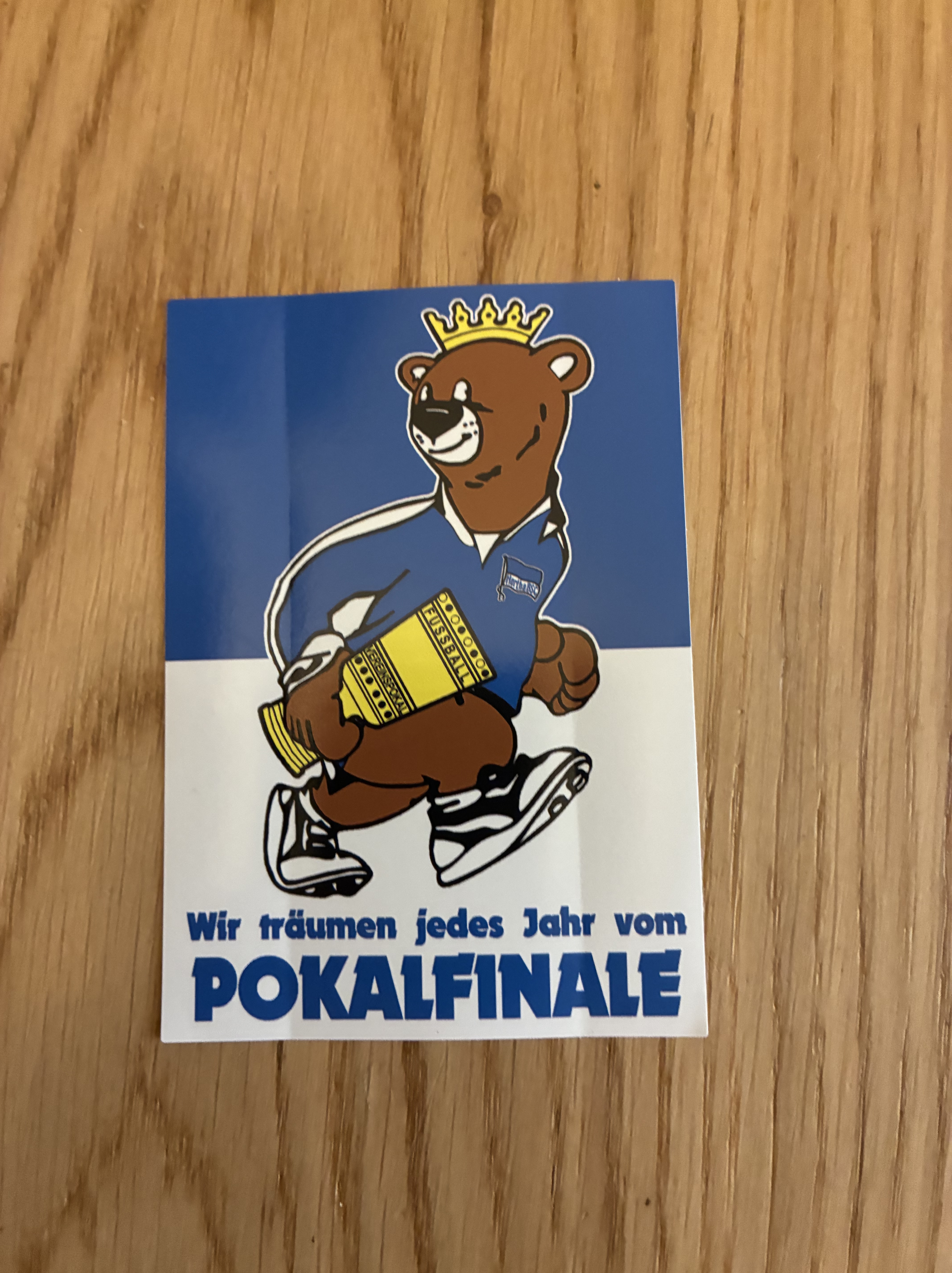Gegen 15:30 ließ ich den metaphorischen Stift fallen und klappte den physischen Rechner zu. Ab zur Bahn und dann mit einigen Umstiegen zum Olympiastadion. Kurz nach der Stadionöffnung, passierte ich die Einlasskontrollen und steuerte direkt den Aufkleberverkauf an. Gutgelaunt brachte ich die Kleber unter das Volk und wurde minütlich nervöser. So war ich froh, dass wir schnell verkauften und circa 30 Minuten vor dem Anpfiff Nemo vorbeischneite, mit dem ich runter in die Kurve ging.