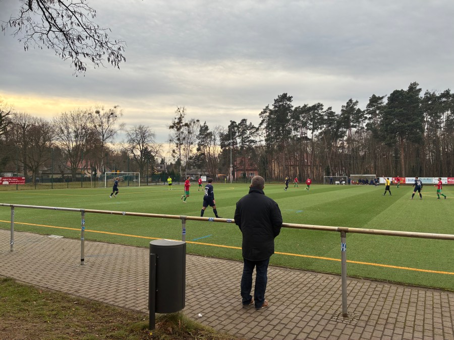 Die Anlage von Michendorf war eher unspektakulär- aber die Anzeigetafel und die Stadionsprecher waren sehr beeindruckend. Gut designt gab es Informationen zur Aufstellung, zum Schiedsrichtergespann und zur Eckenstatistik. Das sieht man in der brandenburgischen Landesklasse sonst eher nicht. Ebenso erfreulich waren die zahlreichen Herthaaufkleber. In einem kämpferischen Spiel konnte Michendorf einen 3:1 Sieg erringen. Mit dem Abpfiff verließ ich die Anlage, vertrödelte noch etwas Zeit und mit der gleichen Buskombi ging es zurück nach Hause. So geht Hoppen im Dezember.