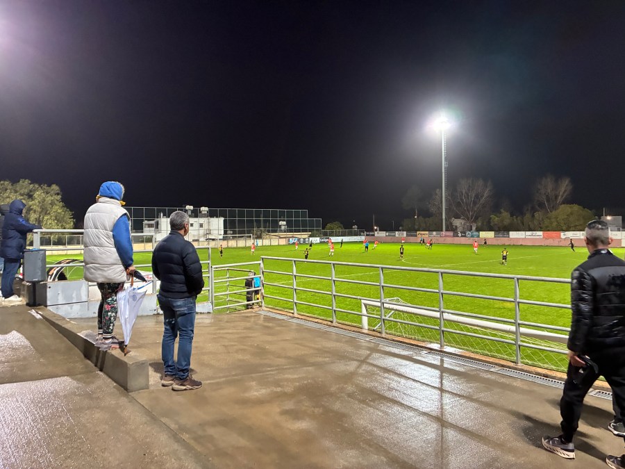 Kurze Zeit später zitterte ich jedoch gewaltig um meinen Länderpunkt. Sinnflutartiger Regen und ein krachendes Gewitter führten dazu, dass ich mich in Richtung Bar verkrümelte. Zwei nicht spielberechtigte Spieler unterhielten sich und es fiel der Satz „The match might get cancelled“. Angst breitete sich in meinem ganzen Körper aus. Das Zentrum des Gewitters erfolgte als sich die Mannschaften in den Kabinen sammelten, danach wurde es zumindest etwas besser und der Schiri pfiff pünktlich um 19:00 an. Total verrückt!
